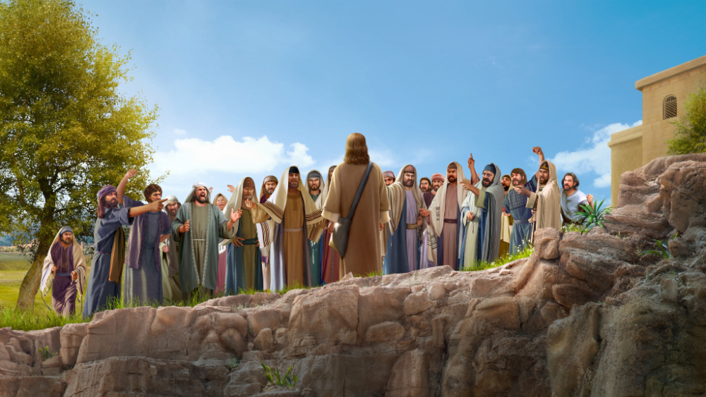 அவர்களை முன்நிறுத்தி தங்களை அவமானப்படுத்தியதாக உணர்கிற நாசரேத்தூர் மக்கள் இயேசுவை மலை உச்சியிலிருந்து கீழே தள்ளிவிடுவதற்காக இழுத்துச் செல்கிறார்கள்.
