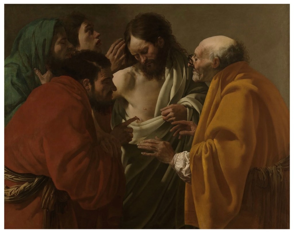 பூட்டிய கதவுகளுக்குப் பின்னால் நின்ற தம் திருத்தூதர்களை இயேசு இரண்டு முறை சந்திக்கிறார். முதல் முறை சந்திப்புக்குப் பின்னரும் அவர்கள் கதவுகளைப் பூட்டியே இருக்கிறார்கள். அவர்களுடைய அனுமதி இல்லாமலேயே அவர்களுடைய வீட்டுக்குள் நுழையும் இயேசு அவர்களை வெளியே அழைத்து வருகிறார். அவர்களுடைய இதயங்களை, குறிப்பாக தோமாவின் இதயத்தைத் திறக்கிறார் இயேசு.