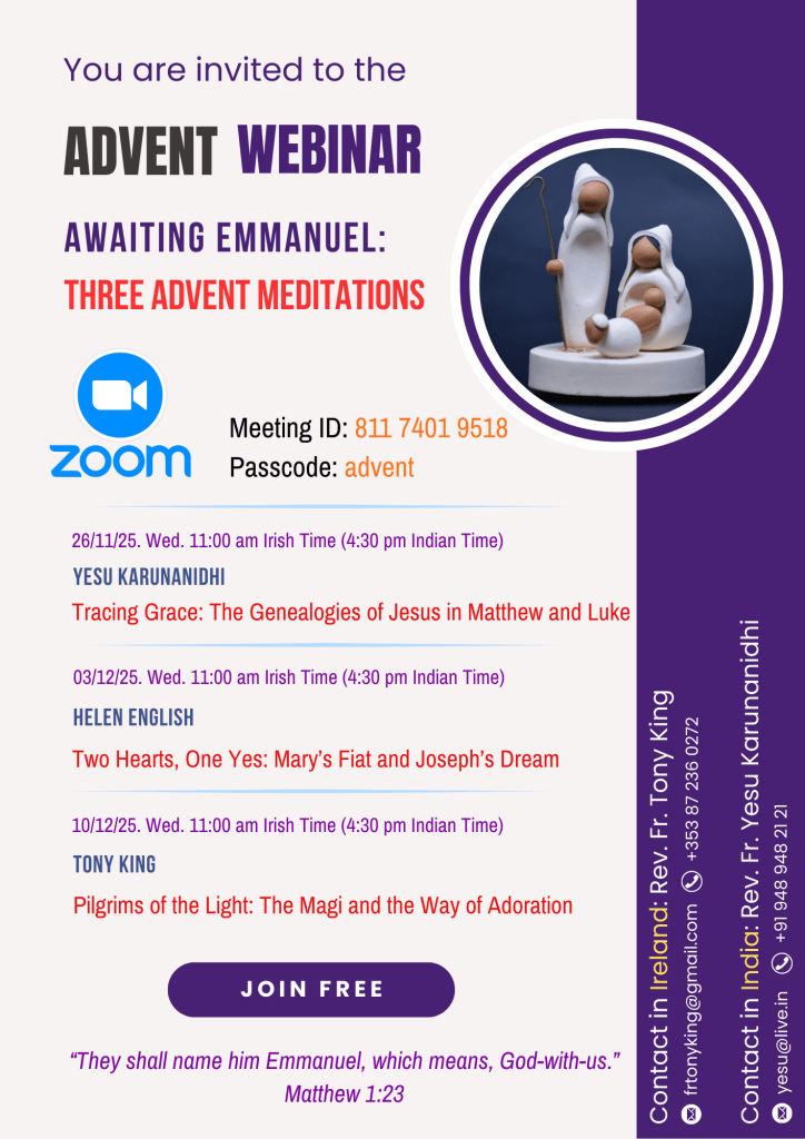 Join us on three Wednesdays (26 Nov, 03 Dec, and 10 Dec ’25), at 4:30 pm IST for Advent Meditations.